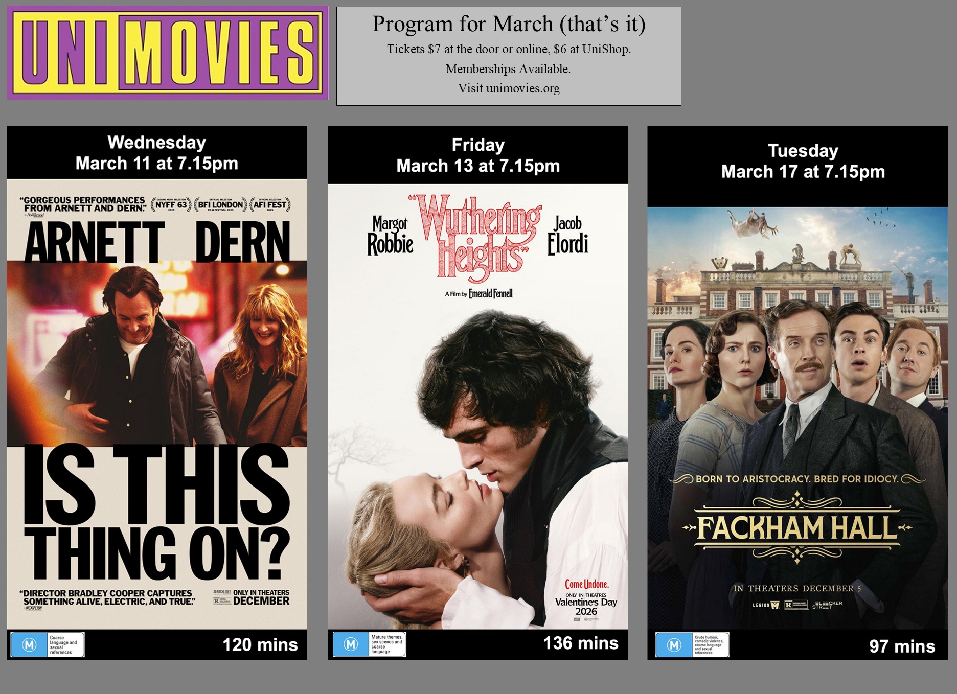 Admission prices: $6 in advance from UniShop; $7 at the door or